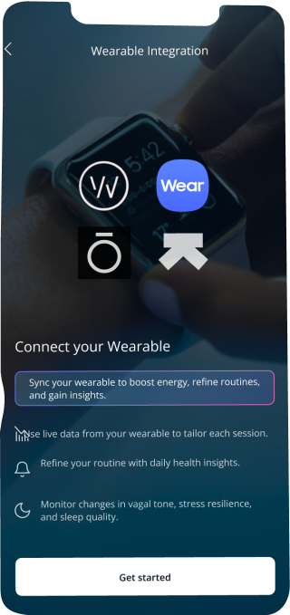 It syncs with fitness trackers via standard health APIs (Apple Health, Google Fit, and others) to provide real-time insights on Heart Rate Variability (HRV), stress markers, sleep readiness, and recovery trends.